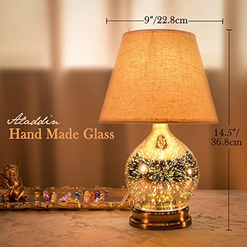 - ★UNIQUE HANDMADE 3D GLASS – The glass base is uniquely hand made by experienced artisans. Table lamp’s diameter is 9.05inch,height is 14.17 inch.