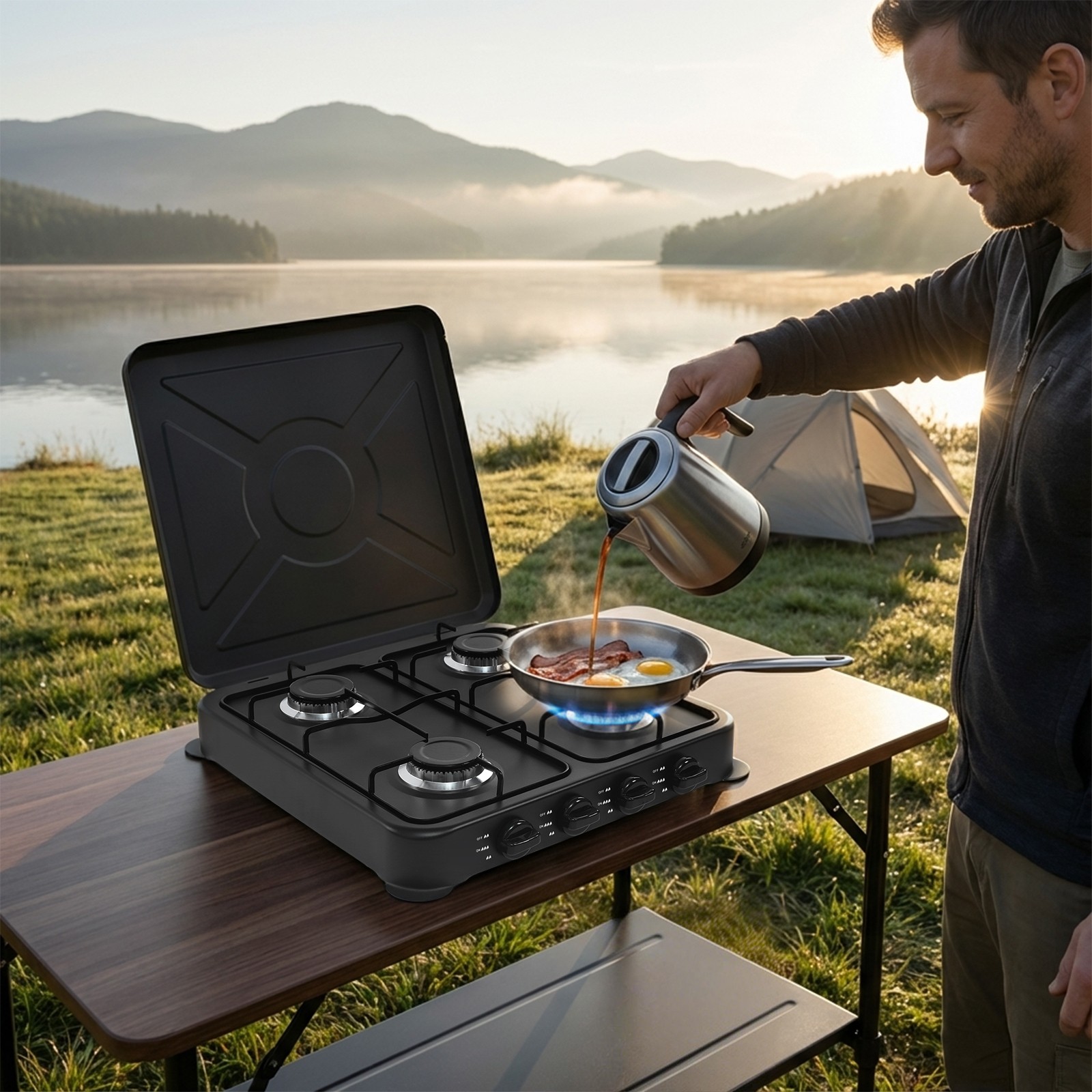 Portable Camping Kitchen Gas Stove Camping Caravan Cooking 4 Burners Outdoor
