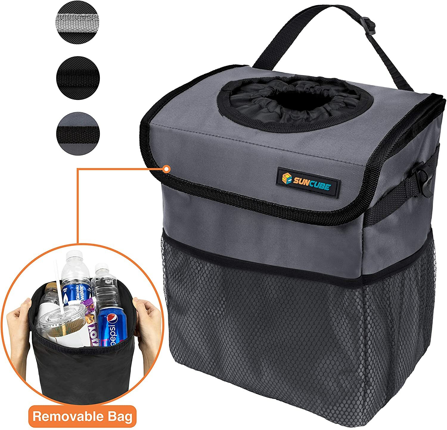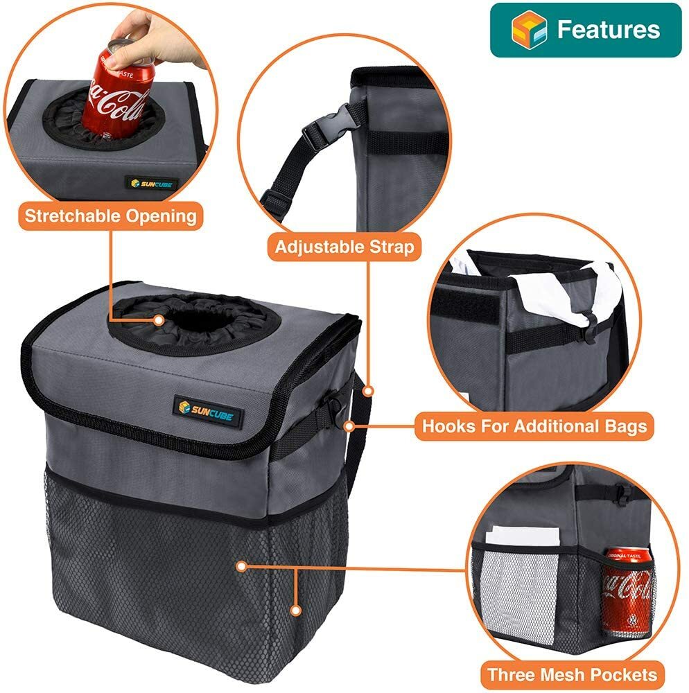 Portable Car Trash Can Garbage Bin Bag Organizer for Vehicles Waterproof Black