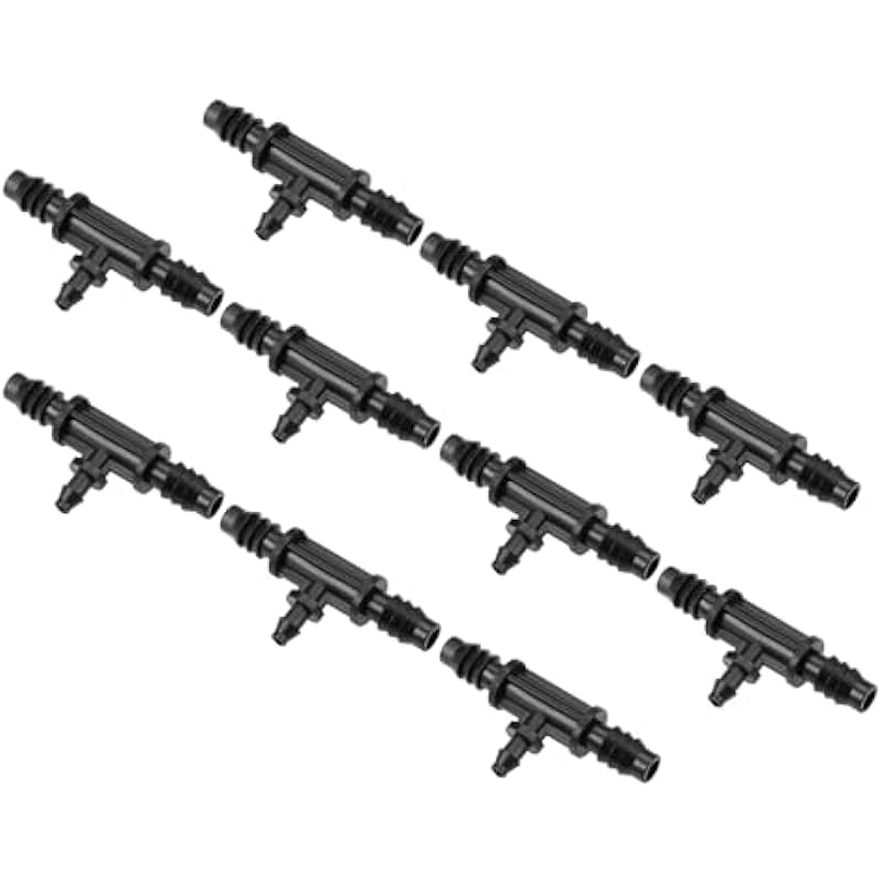 QUARKZMAN Barb Drip T Pipe Connector 4 mm and 8 mm Internal Diameter Hose Accessory for Agricultural Garden Irrigation System, Plastic 20 Units