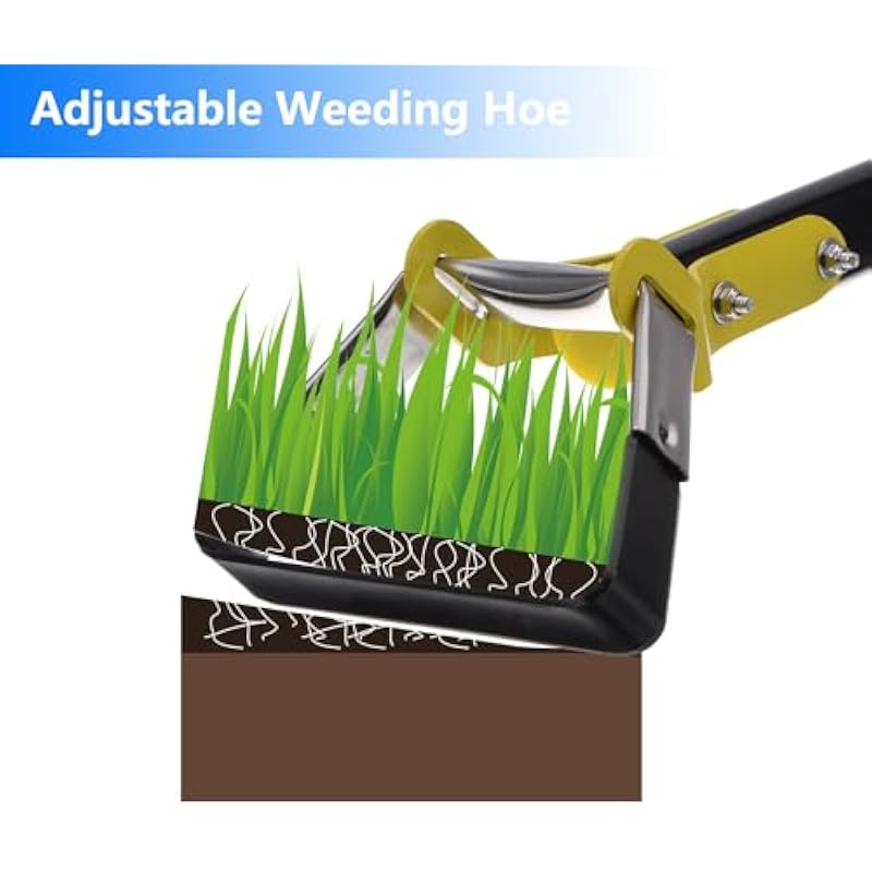 - Push Pull Hoe Weeder – The hula hoe garden tool is designed with a ring-shaped blade that cuts weeds under the surface with an easy push and pull motion, which decreases weeding time and effort, and the handle is adjustable from 15″ to 47″ so you can work comfortably without having to bend or kneel.