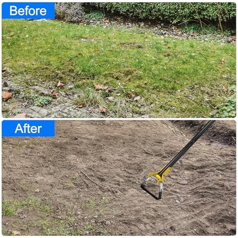 - High Hardness Material The weeding action hoe is crafted with good quality manganese steel, which has high tenacity, deterioration resistance and large bearing capacity, making the weeding tool suitable for loosening soil, sowing, opening trenches and cultivating.