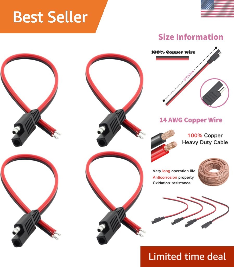 Red/Black SAE Connector Extension Cable, 1FT Quick Disconnect Wire for Easy Use