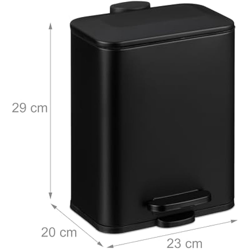 Relaxdays Bathroom Trash Can 5 Litres, Waste Bin with Lid, Matte Finish, with Pedal, Removable Bin, Black