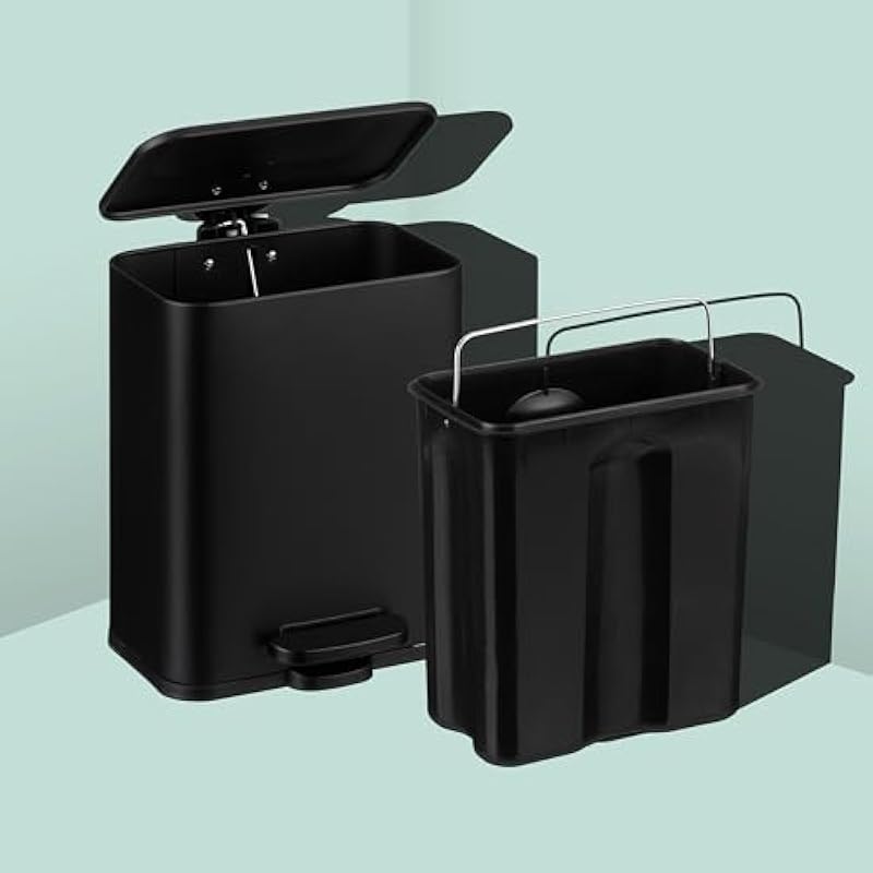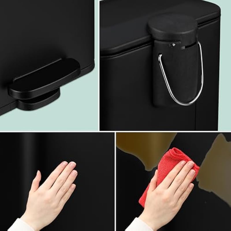 - Hands-free: black bathroom trash can with pedal. Easy, hands-free waste disposal