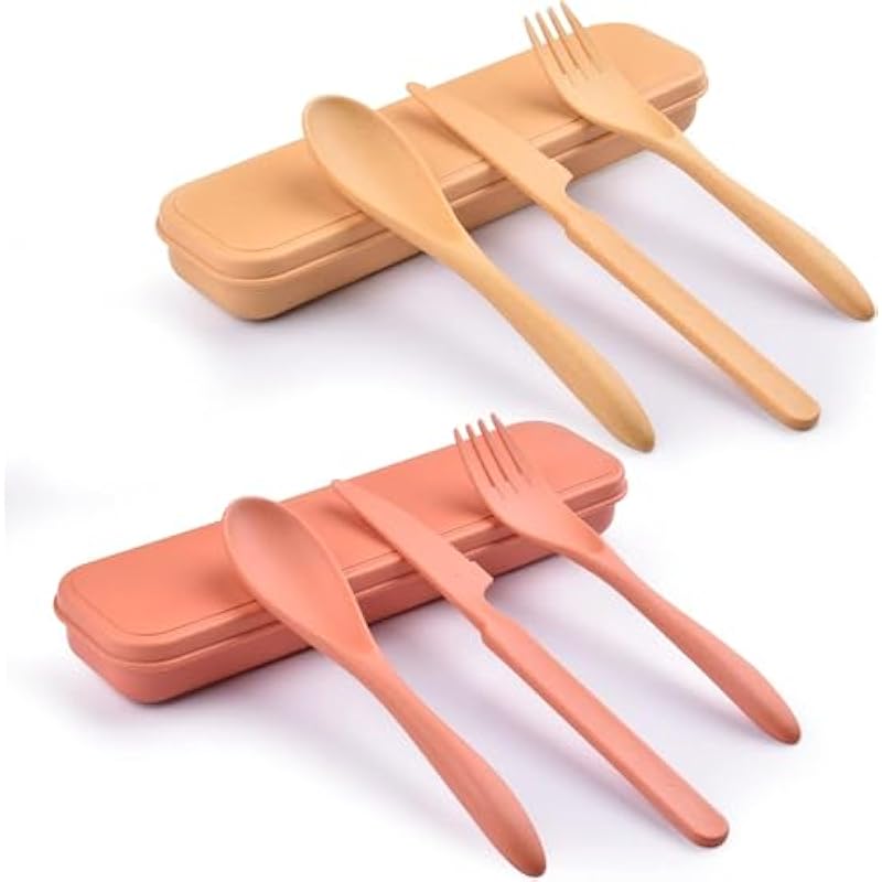 - Package Includes:2 Set Travel Utensils with Case Each set includes 1 spoon, 1 knife, 1 fork and 1 travel utensil box.