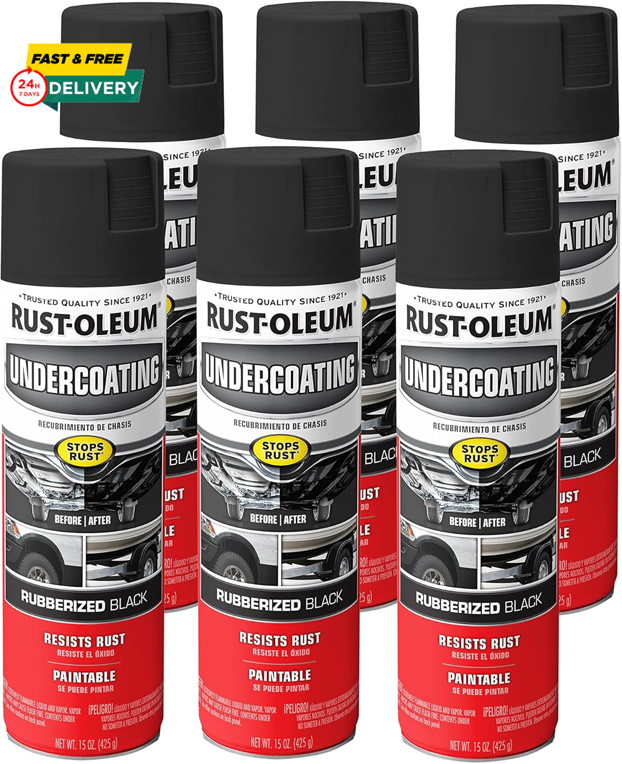 Rust-Oleum 248657-6PK Stops Rust Undercoating Spray, 15 Oz, Rubberized Black, 6