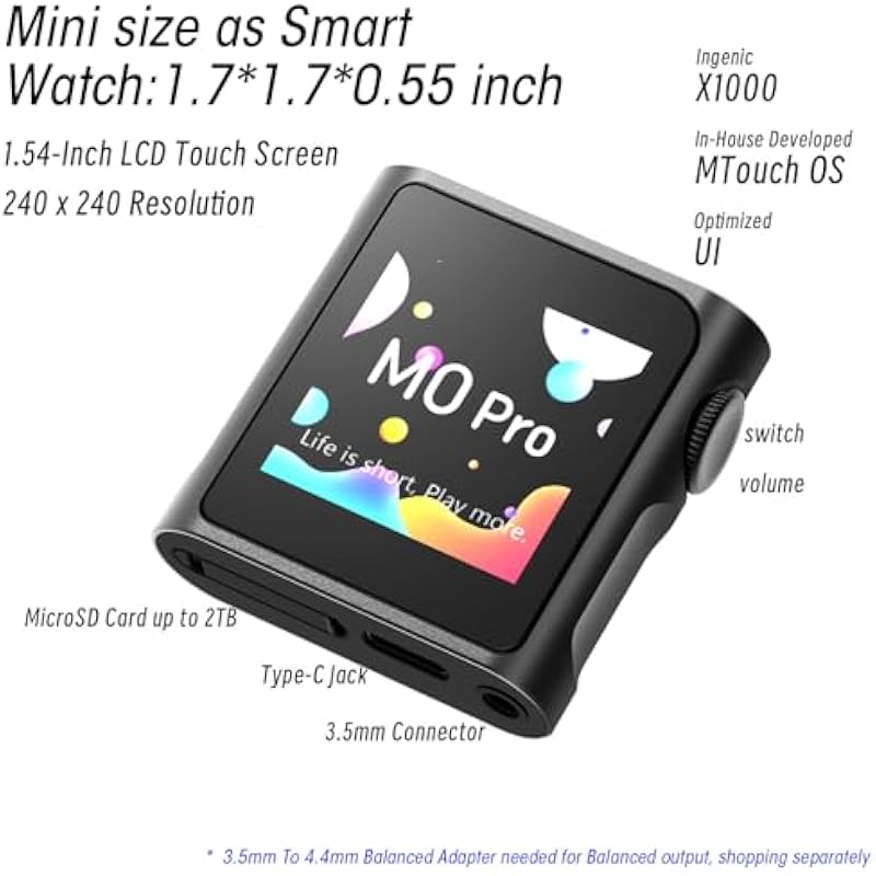 - SHANLING M0 Pro 1.7 * 1.7inch 2in1 Mini MP3 Player/Headphone DAC/Amp/Bluetooth/App Control, Digital Audio Player HD Touch Screen, Support to 2TB, USB Type-C 3.5mm Jacks,Volume Konb