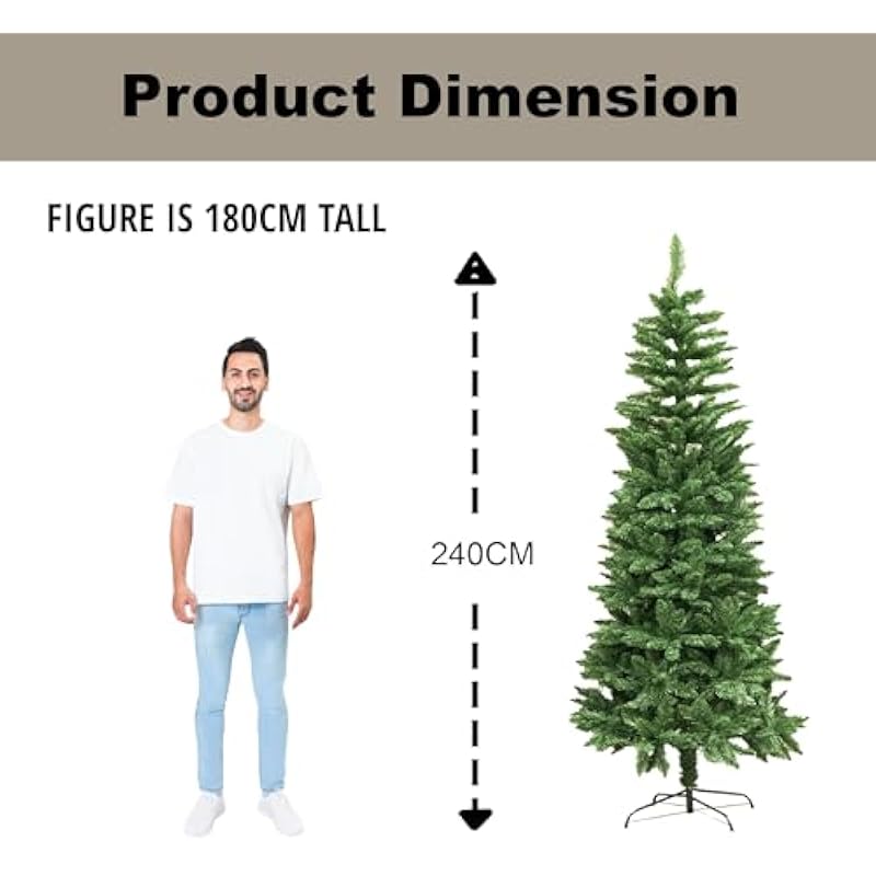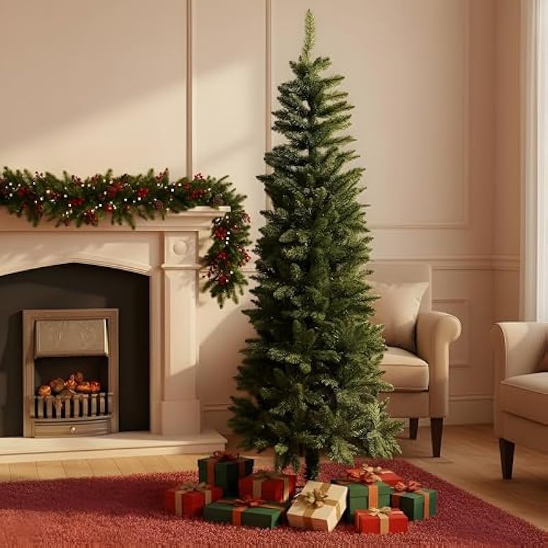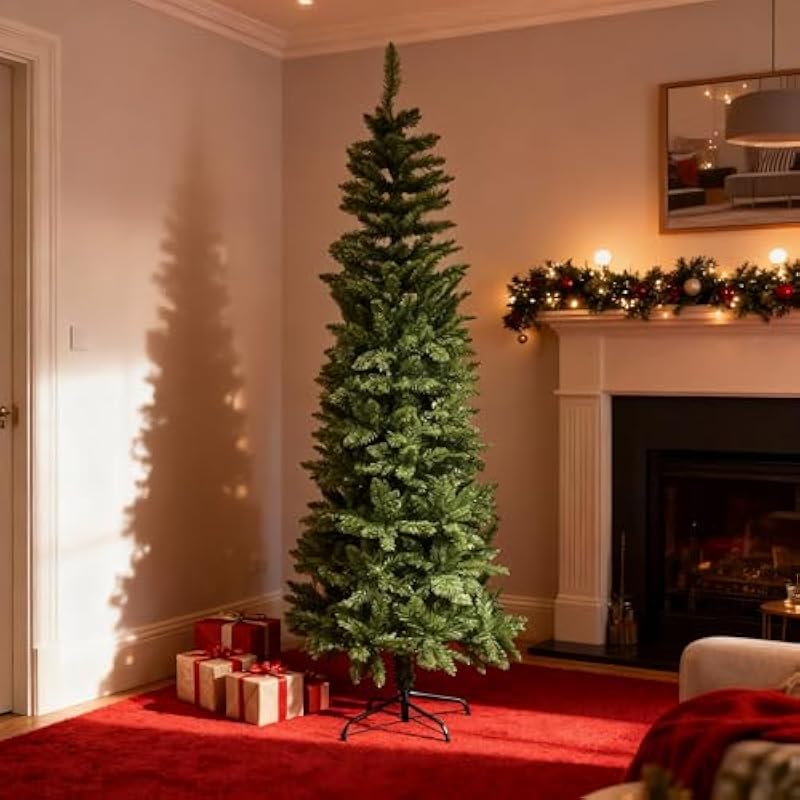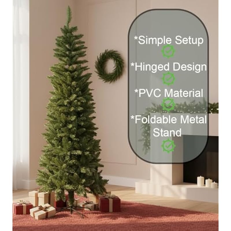 SHATCHI Green Pine Slim Christmas Tree with Pencil Tips, Metal, 7 Feet