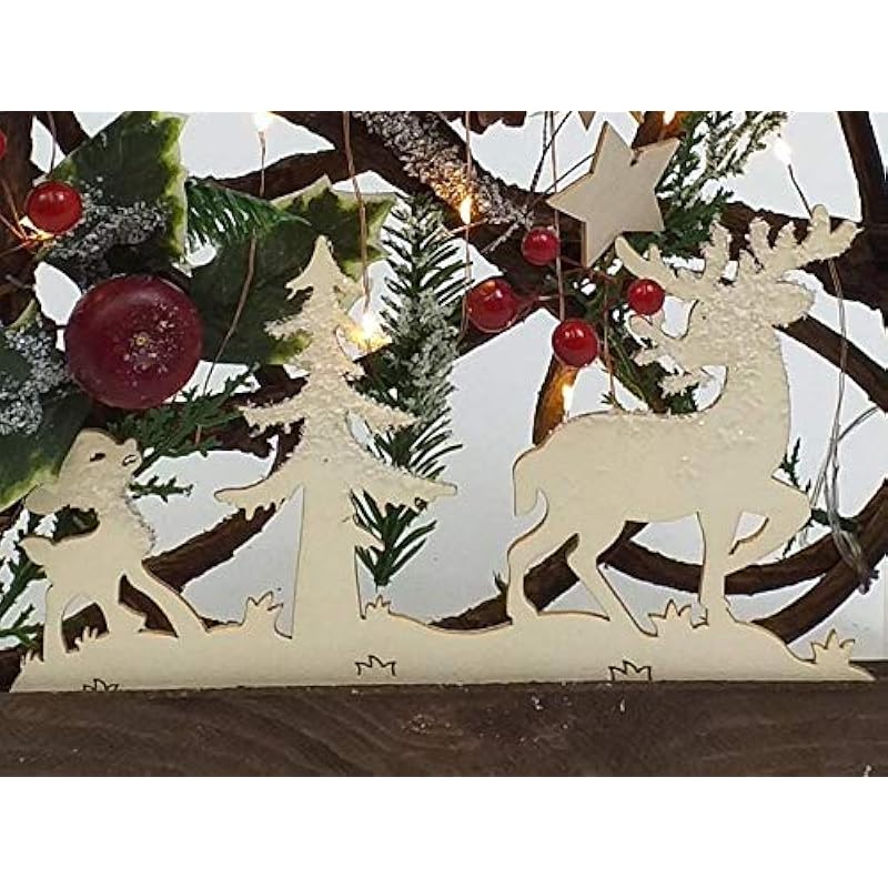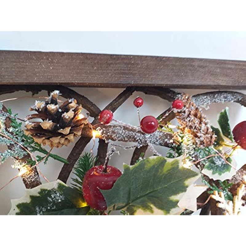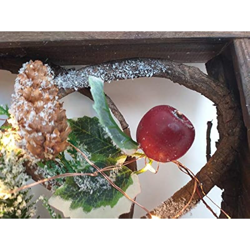 SHATCHI Pre-lit LED with Leaves, Pineapples, Berries, Nordic Scene, Wooden Frame, Table, Christmas Decoration, Gift – Star, Tree, Square, Rectangular Shape, Brown, 30 cm