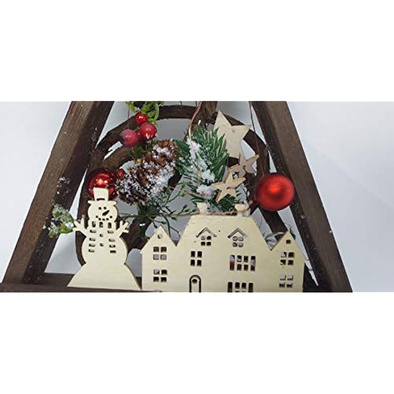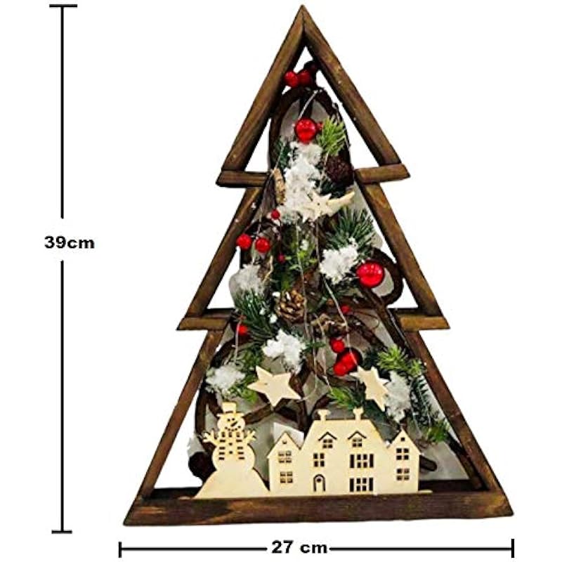SHATCHI Pre-lit LED with Leaves, Pineapples, Berries, Nordic Scene, Wooden Frame, Table, Christmas Decoration, Gift – Star, Tree, Square, Rectangular Shape, Brown, 30 cm