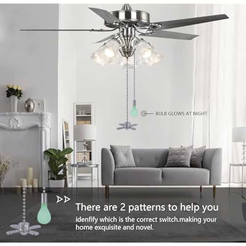 - 【Easy to Use】- The design of the fan and the small light bulb helps us identify the correct chain. Comes with 12″ extension chains to help us adjust the desired chain length.