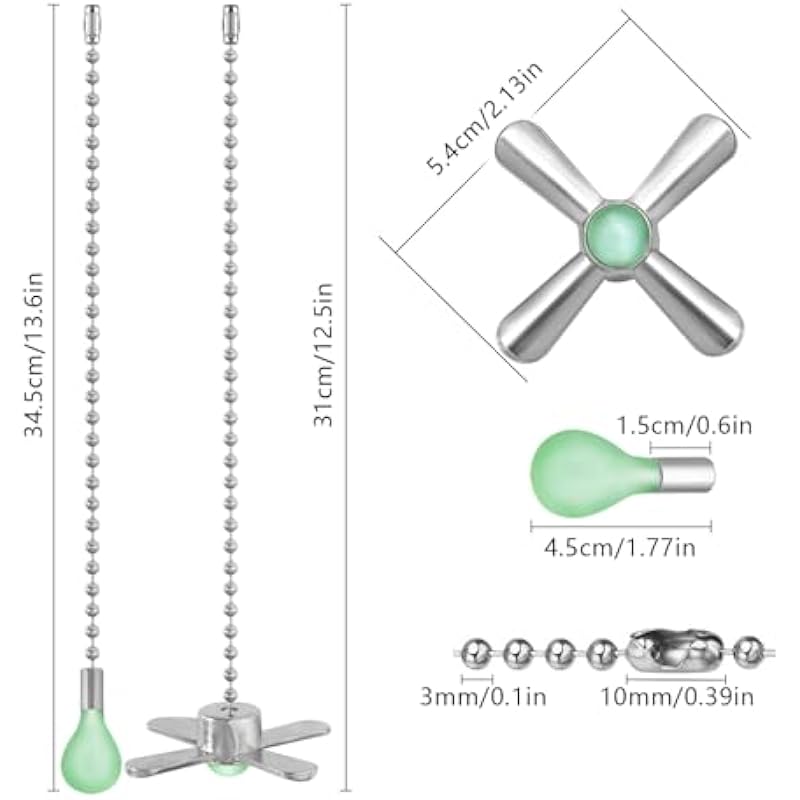 - 【Innovative Design】- The ceiling fan chain pulls made from eco-friendly fluorescent material of great quality. Fluorescence can make finding a fan switch or light switch faster in the dark, and the light won’t interfere with your sleep.