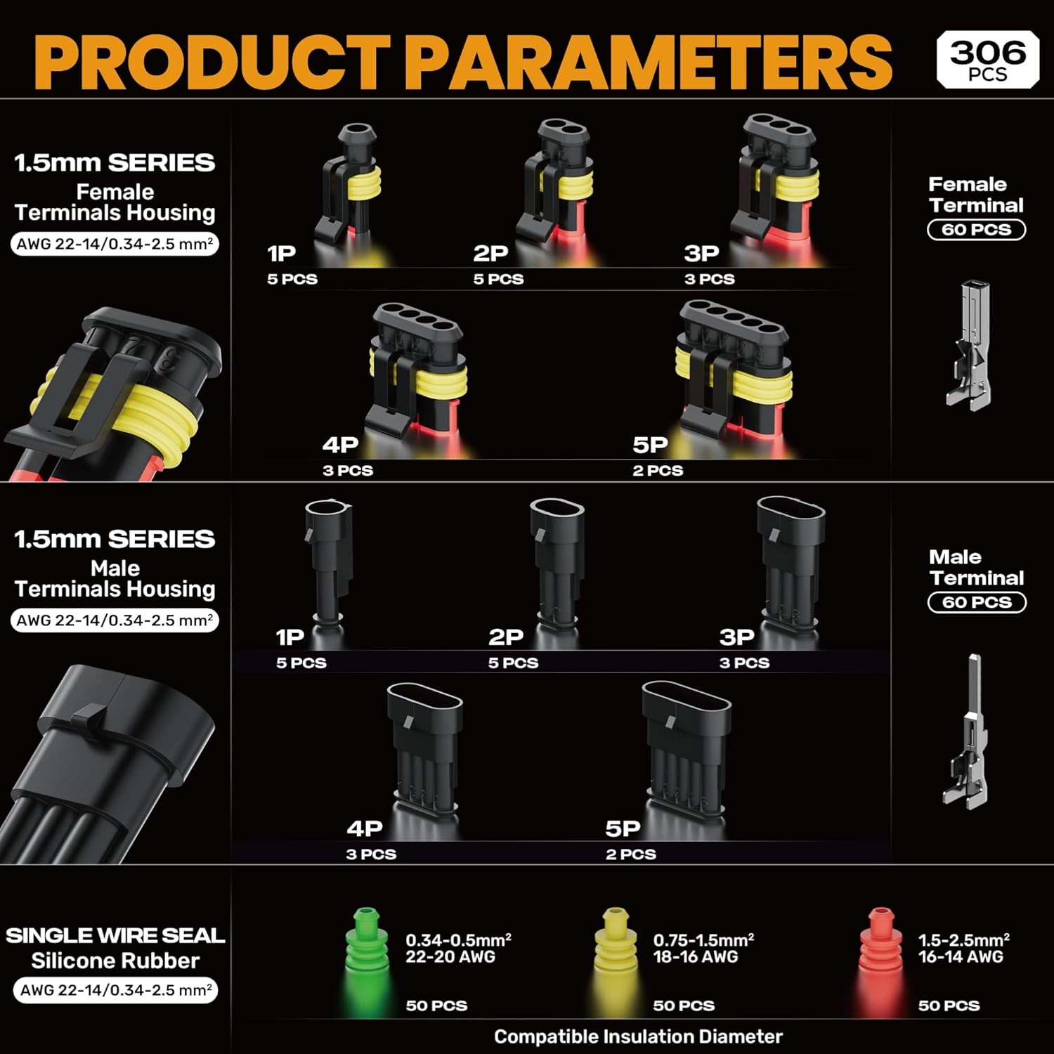 SOMELINE Crimping Tool Kit, Waterproof Automotive Electrical Black, Orange