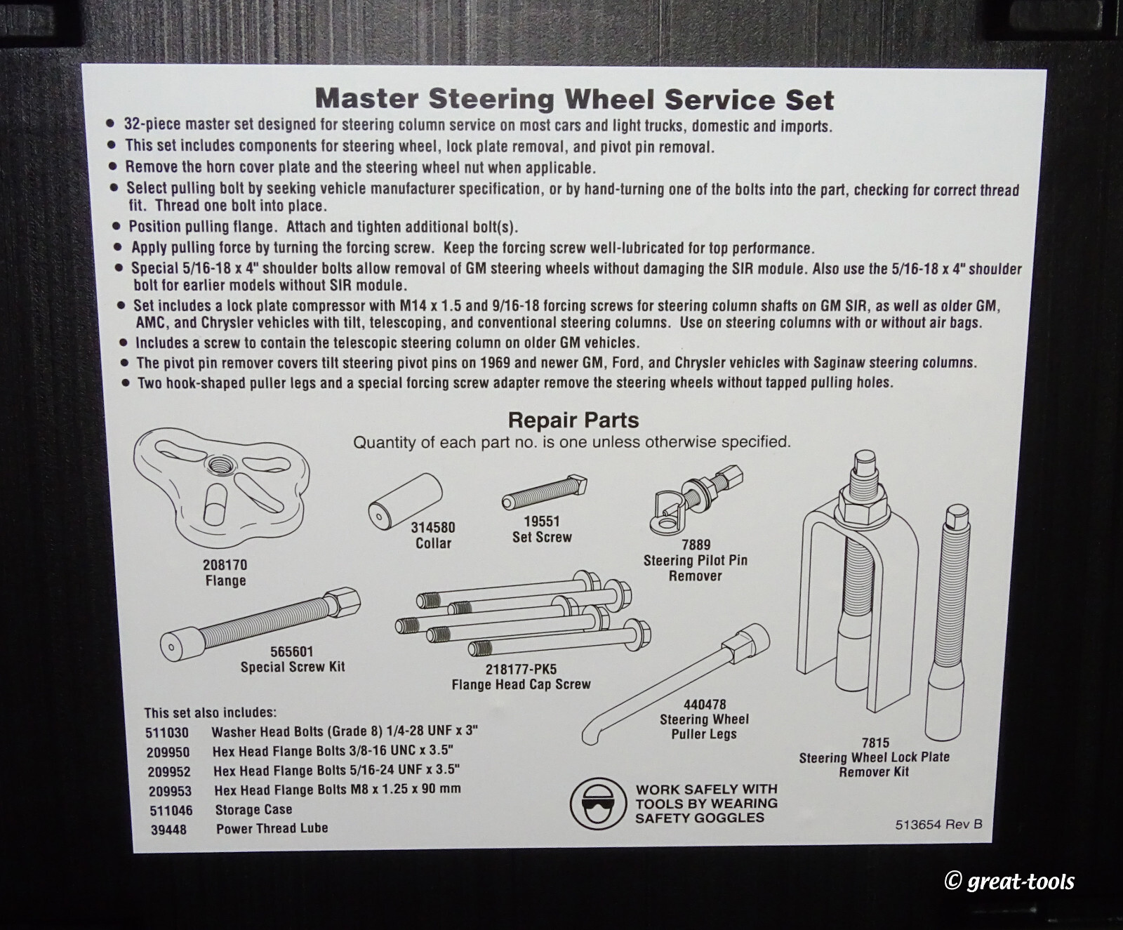 STEERING WHEEL SERVICE KIT – OTC Tools – puller – automotive – remover – pulling