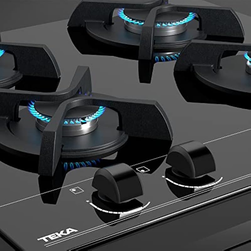 Teka GBC 64000 KBN – Natural Gas Hob 60 cm, 4 Fires Ergonomic Front Controls, Rounded Tempered Glass Surface, Black Glass