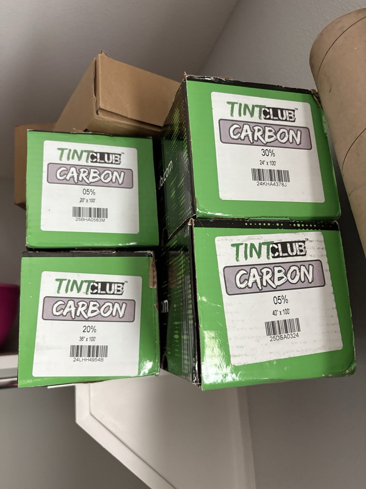 Tint Club Carbon Automotive window tint Rolls 05%, 20%, And 30% VLT (4 Roll LOT)