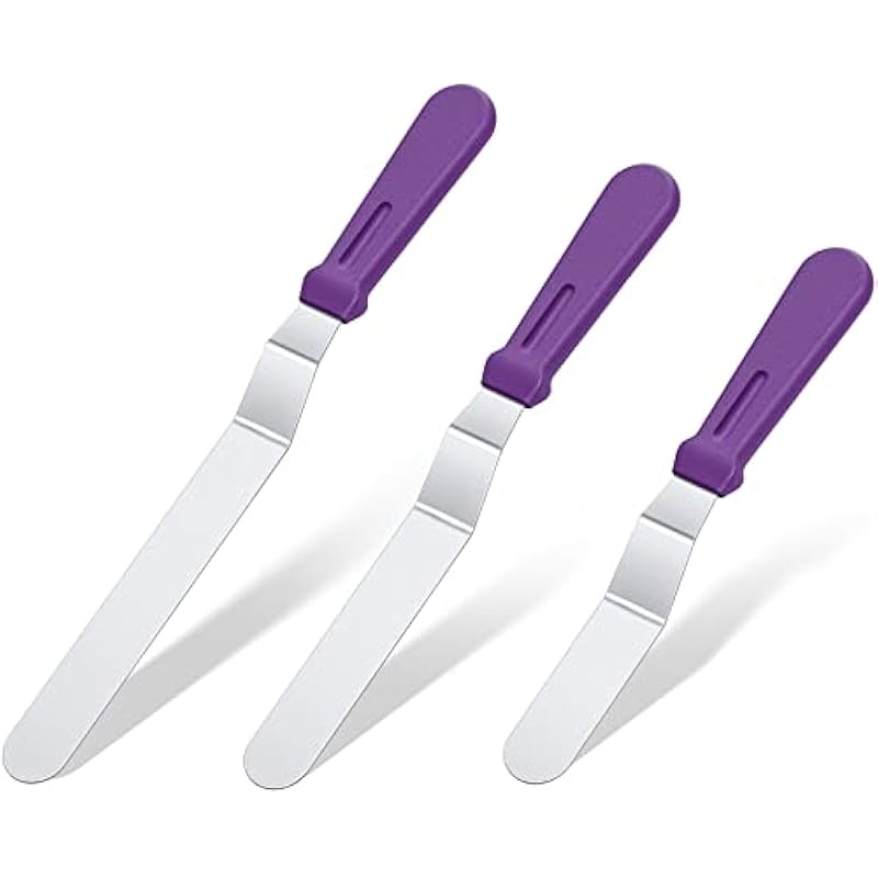 U-Taste 3 Piece Pastry Spatula Set, 18/0 Stainless Steel with Premium PP Plastic Handle, Angled Icing Spatula Set for Cake Decorating (Black)