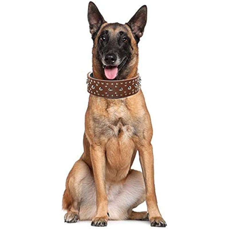 Unisex Studded Leather Dog Collar Medium Large Pitbull Doberman Sizes M L (M, Golden Brown)