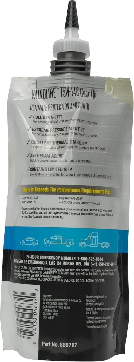 Be the first to review “Valvoline Advanced Full Synthetic Gear Oil FlexFill 75W-140 1 QT Pouch | Super” Cancel reply