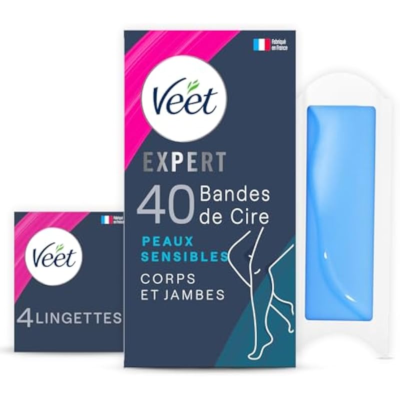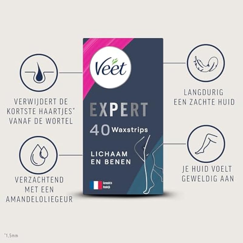 Veet Expert – 40 wax strips for body and legs – for sensitive skin – perfect processing – long-lasting hair removal