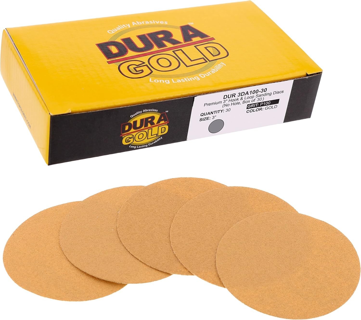 Versatile 3″ Gold Hook & Loop Sanding Discs – 100 Grit for Wood & Automotive