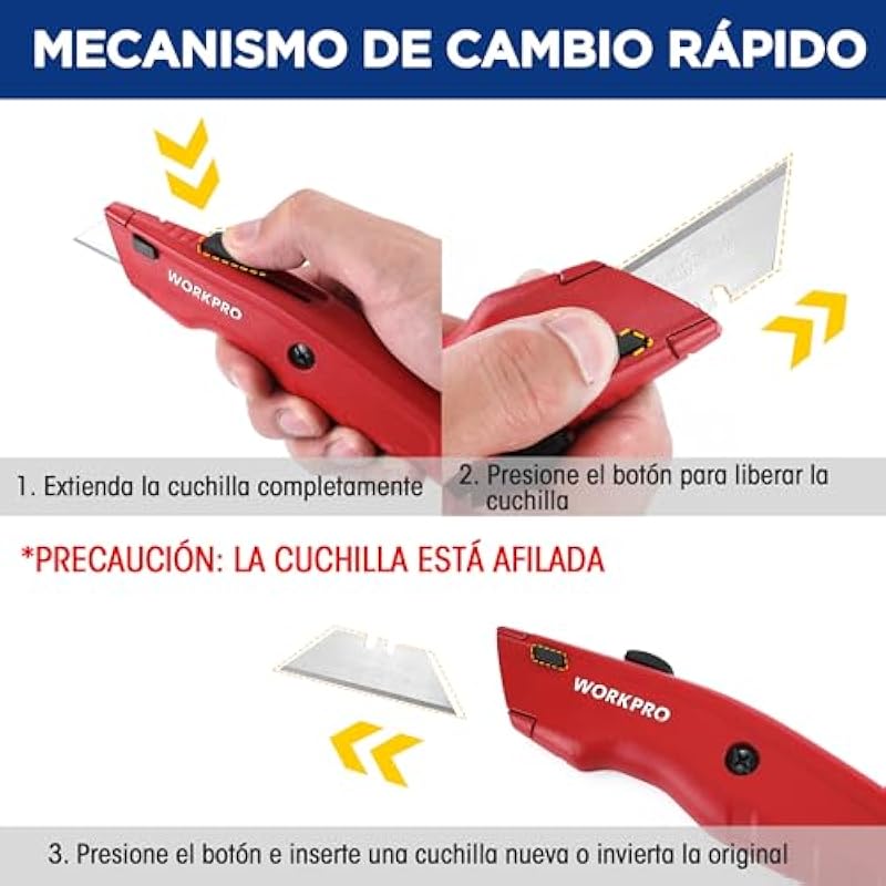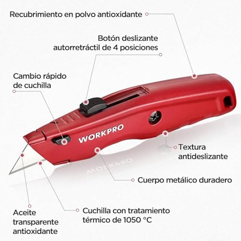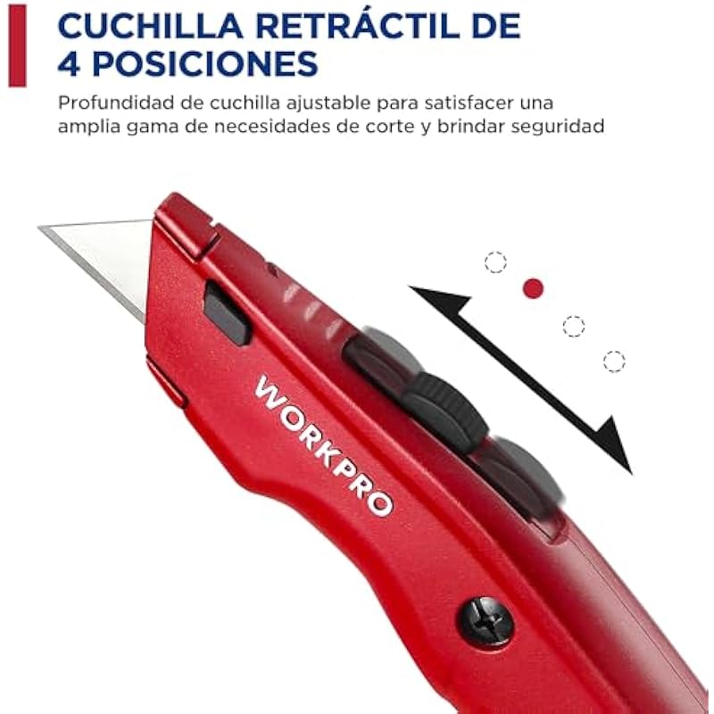 WORKPRO Professional Cutter, Universal Cutter, Professional Cutter with Non-Slip Aluminium Handle, Knife with 10 Additional Blades, Blue