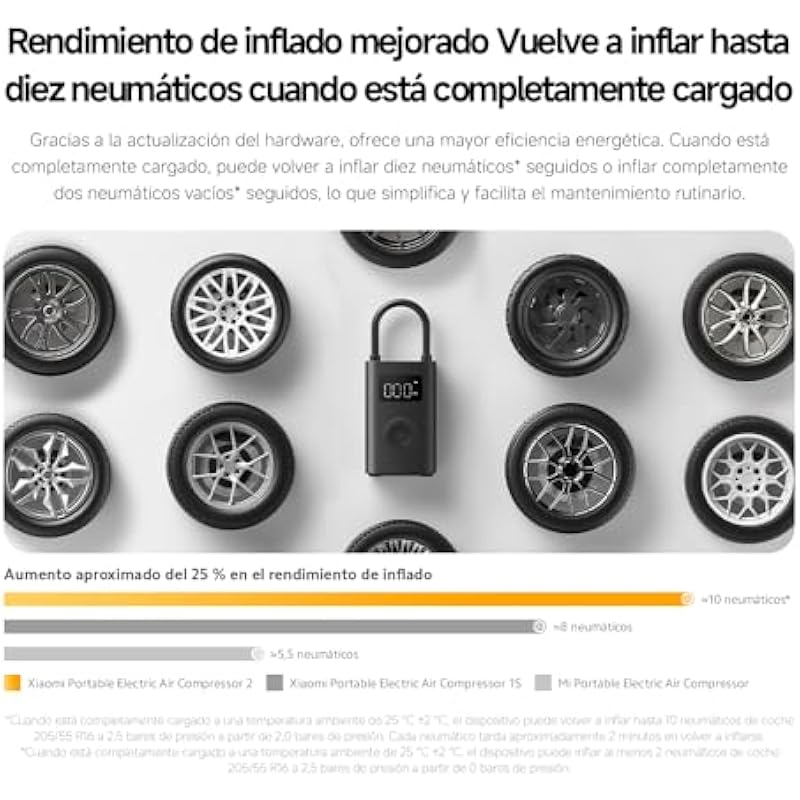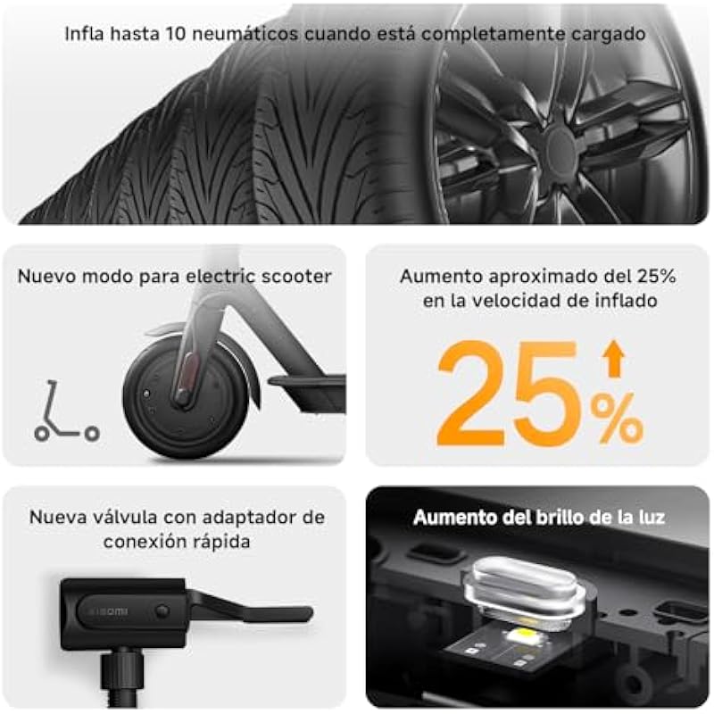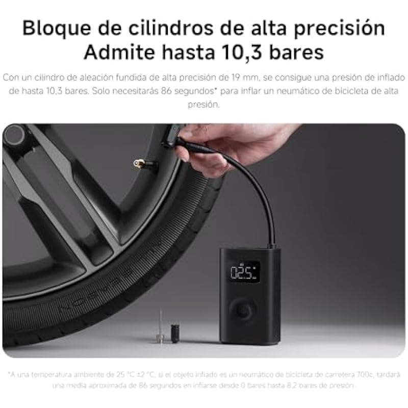 Xiaomi Portable Electric Air Compressor 2 Portable Air Compressor (0.2 10.3 bar/3-150psi, 6 Modes, 2000mAh Battery, 14.4Wh, USB-C Charging, LED Display), Black (ES Version)