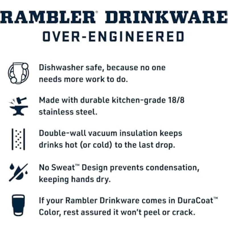 - DISHWASHER SAFE – Because no one needs more work. Like the entire Rambler Drinkware family, the 20 oz tumbler and lid are dishwasher safe and therefore easy to clean.