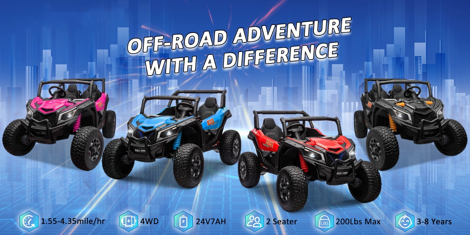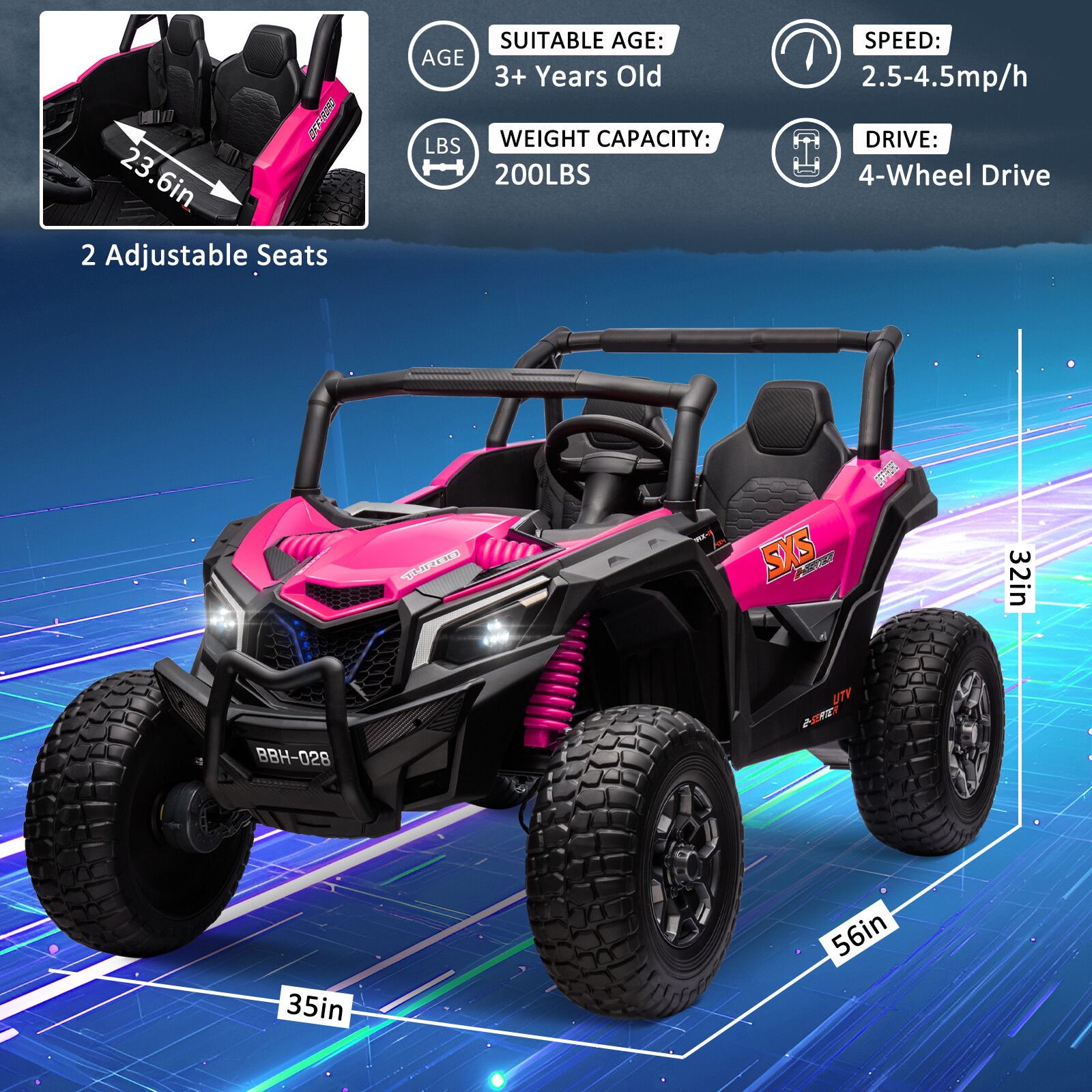ZEOPHOL 24V Battery Kids Ride On Car UTV Truck 4WD 2-Seater 4X200W Powered Wheel